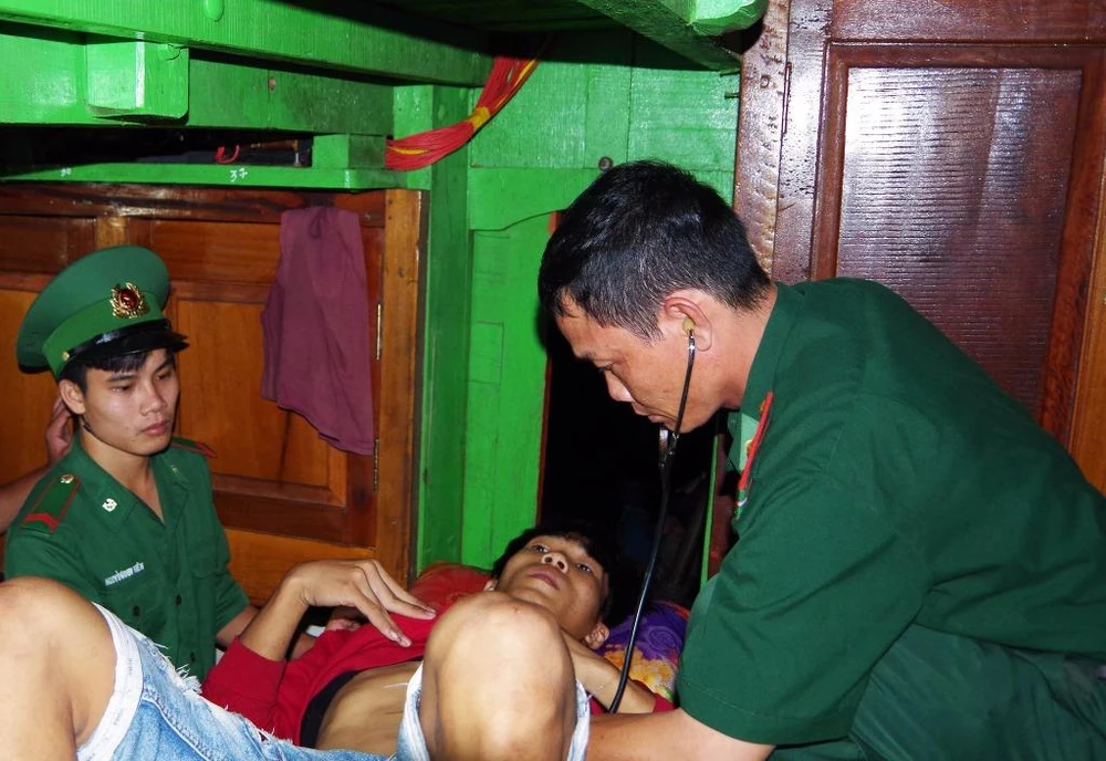 Lúc 23 giờ 30 ngày 20-9, tàu cá BĐ 97882 TS do ông Phạm Văn Hoàng (42 tuổi, ngụ thôn Lộ Diêu, xã Hoài Mỹ, huyện Hoài Nhơn, Bình Định) làm thuyền trưởng đã đưa ngư dân Nguyễn Thanh Hải (ngụ TP Nha Trang, Khánh Hòa) vào Trạm kiểm soát biên phòng Mũi Tấn thuộc Bộ đội biên phòng Bình Định để cấp cứu.