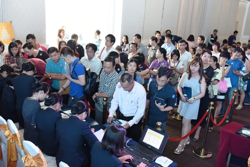 Hàng trăm người xếp hàng mua nhà tại dự án Saigon South Residences