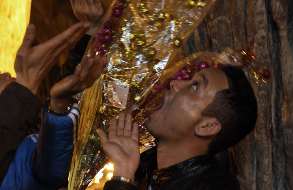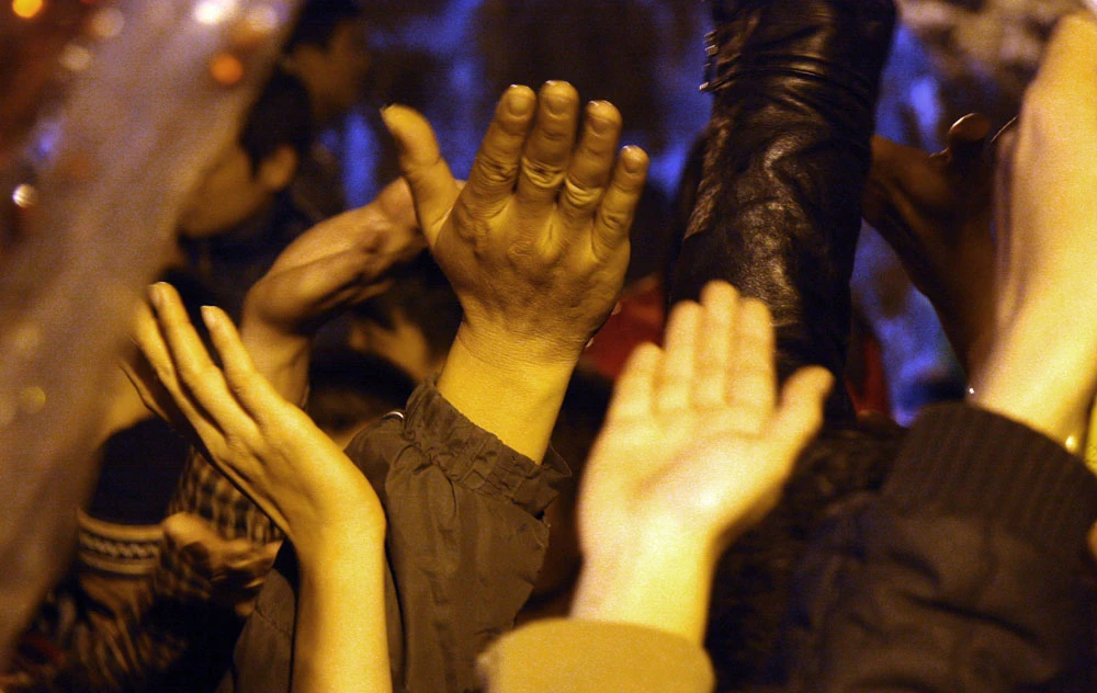 Những cánh tay giơ cao, mong muốn hứng được những giọt “nước thánh” từ trên cao nhỏ giọt rớt xuống.
