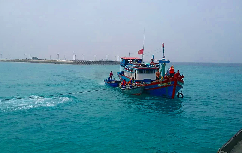 Chiều 21-9, tin từ Quân chủng Hải quân Việt Nam cho biết từ 7 giờ 30 đến 10 giờ cùng ngày, đảo Sinh Tồn phối hợp với Trung tâm hậu cần kỹ thuật Âu tàu 129 đã tiếp nhận an toàn tàu cá BTh 98804 TS do ông Kiều Văn Trọng ở Phú Quý, Bình Thuận làm thuyền trưởng.