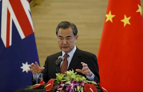 Bộ trưởng Bộ Ngoại giao Vương Nghị phát biểu tại buổi họp báo chung với ngoại trưởng Úc tại Bắc Kinh ngày 17-2. Ảnh: REUTERS