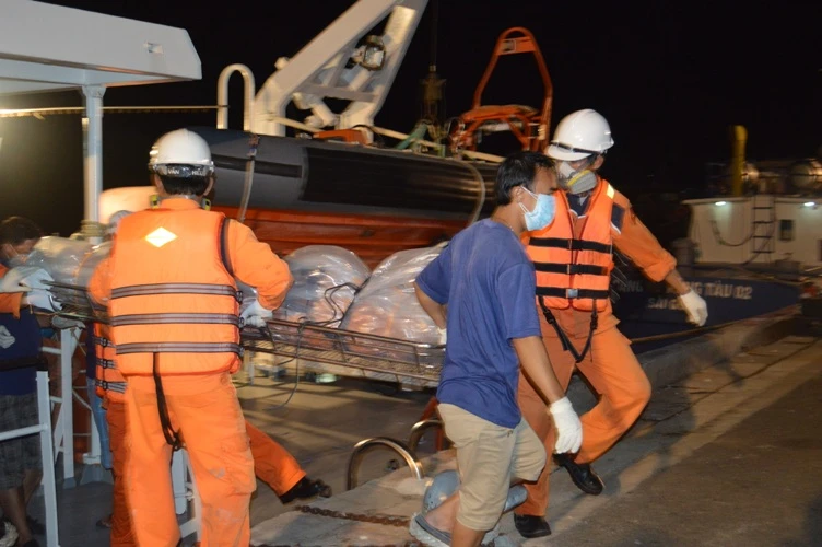 Thi thể các thuyền viên được đưa về bệnh viện để tiến hành các thủ tục pháp lý cần thiết trước khi bàn giao cho gia đình đưa về quê an táng-TK