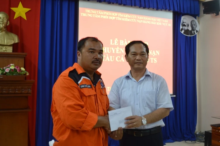 Cũng trong buổi lễ bàn giao, ông Mai Ngọc Thuận-Bí thư Thành ủy TP.Vũng Tàu cùng một số cá nhân các đơn vị DN khác đã có mặt để chia sẻ, động viên gia đình các ngư dân. Ông Thuận và các cá nhân cũng đã trực tiếp trao tiền tặng tàu SAR 413 và gia đình ngư dân gặp nạn với tư cách cá nhân.