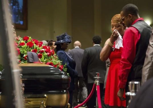 Mọi người xếp thành hàng dài ở bên ngoài ngôi đền Missionary Baptist, trong khi 5.000 chiếc ghế của nhà thờ đã được lấp đầy. Sau nghi lễ đám tang, Brown được chôn cất tại nghĩa trang ở vùng St. Peter.