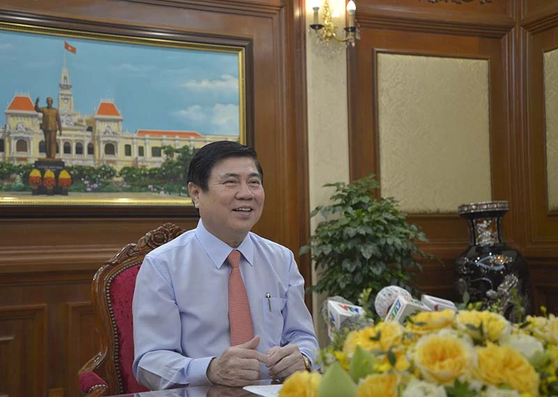 Chủ tịch UBND TP.HCM Nguyễn Thành Phong trả lời phỏng vấn. Ảnh: PHƯƠNG THÙY