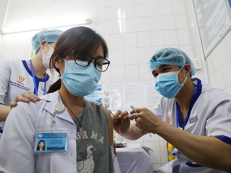 Tiêm vaccine COVID-19 cho nhân viên y tế BV Bệnh nhiệt đới TP.HCM.