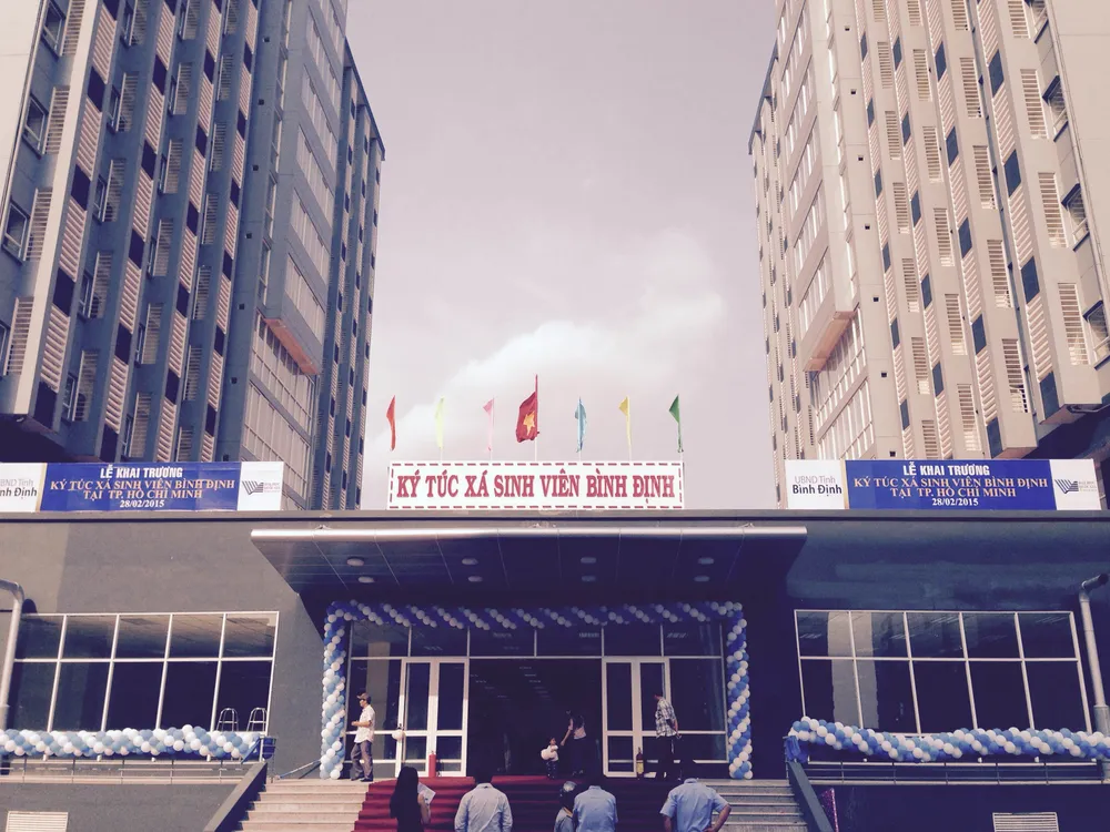 Ký túc xá cho sinh viên Bình Định gồm hai tòa nhà D5 – D6 ở khu B KTX sinh viên ĐH Quốc gia TP.HCM (quận Thủ Đức, TP. HCM) có tổng diện tích 33.890 m2, gồm 12 tầng và 1 tầng hầm. Hai tòa nhà có tổng cộng 480 phòng, mỗi phòng có sức chứa tám sinh viên (được bố trí ở miễn phí, chỉ đóng tiền điện, nước).