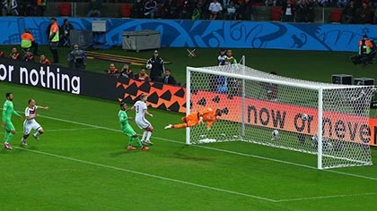 Goetze lao vào đệm bóng cận thành nhưng không thắng được Mbolhi. Ảnh: FIFA.com