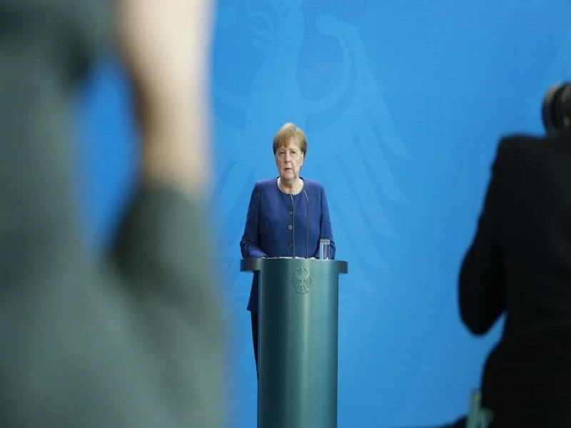 Thủ tướng Đức Angela Merkel trong buổi họp báo về công tác chống đại dịch COVID-19 hôm 6-4 tại thủ đô Berlin, Đức. Ảnh: EPA