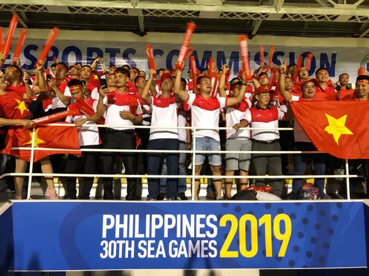 Các CĐV Việt Nam trên sân Rizal Memorial. Ảnh: CÔNG TUẤN