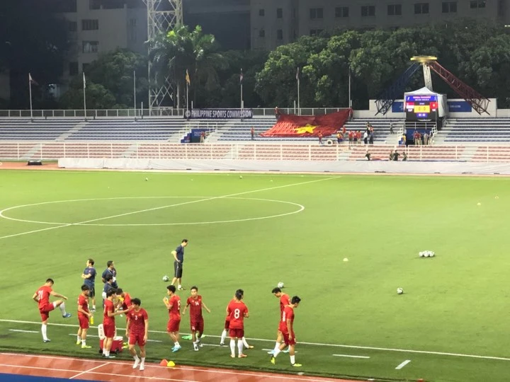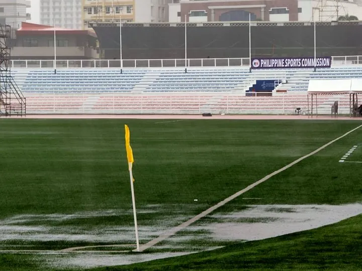 Cơn bão Kammuri quái ác ập vào Philippines đúng ngày diễn ra trận đấu giữa U-22 Việt Nam và U-22 Singapore trong khuôn khổ bảng B SEA Games 30. Mặt sân cỏ nhân tạo Rizal Memorial hiện tại đang trở thành cái ao với rất nhiều vũng nước đọng trên mặt sân.