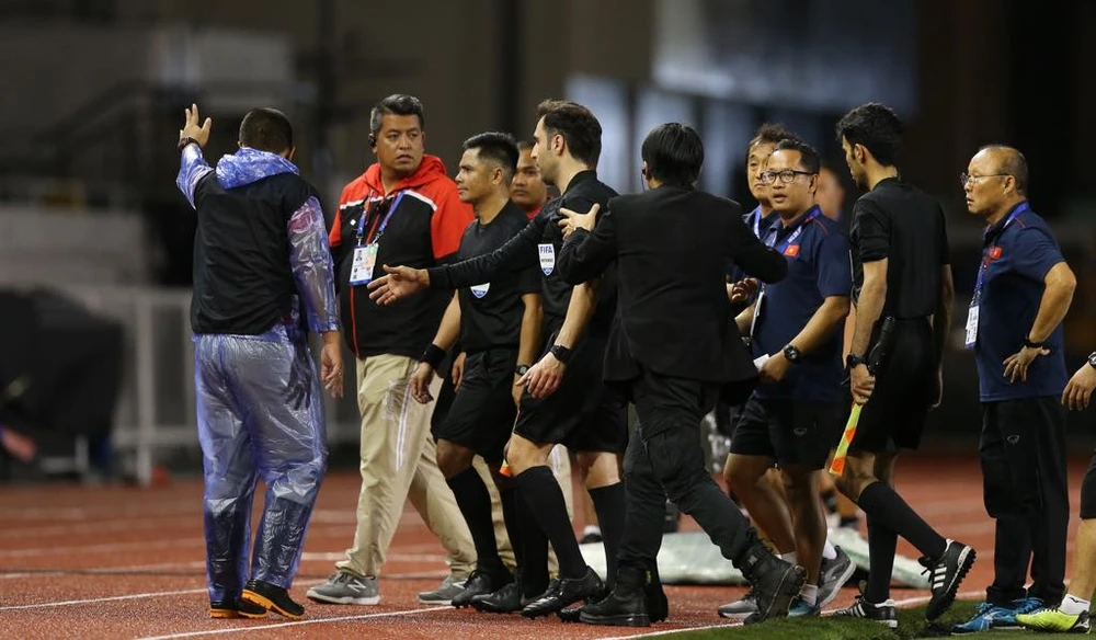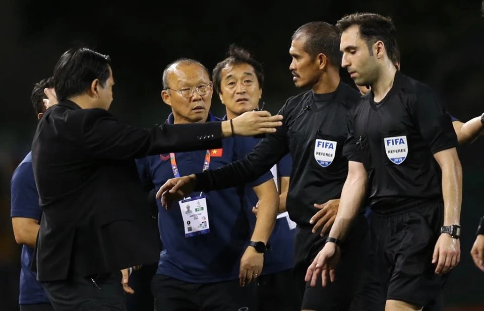 HLV Park Hang-seo có vẻ không hài lòng với cách điều khiển trận đấu của trọng tài Alanezi Abdulhadi Moab.