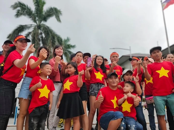 Việt kiều tại Philippines với cờ đỏ sao vàng cổ vũ cho U-22 Việt Nam.