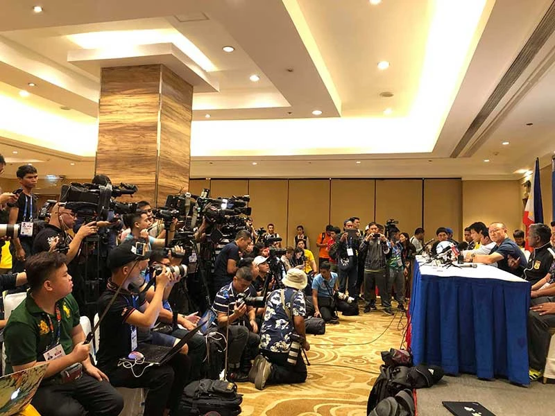Quang cảnh buổi họp báo của bảng B SEA Games 30 diễn ra hôm qua (24-11).