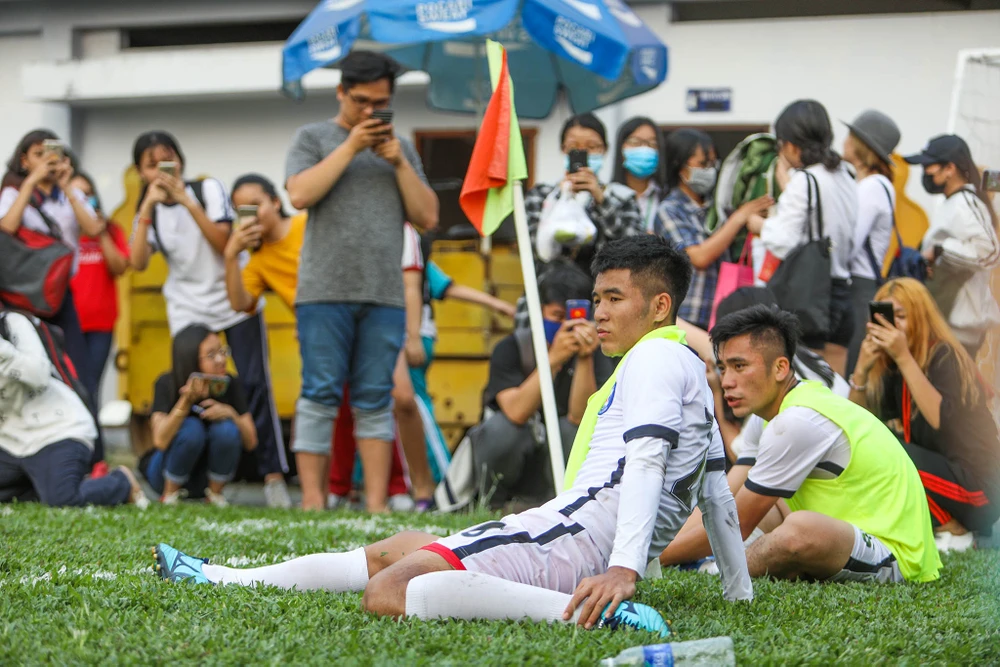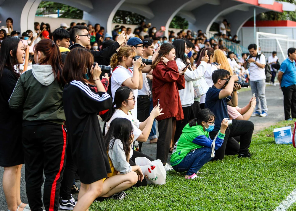 Trước sự cuồng nhiệt của hàng trăm người hâm mộ U-23 Việt Nam đến cổ vũ cho Đức Chinh và Tiến Dụng, Quyền Chủ tịch CLB TP.HCM - ông Lê Công Vinh đã chọn cho mình vị trí theo dõi khá kín đáo trên tầng một để quan sát trận đấu từ xa, chứ không ngồi ở khu vực khán đài hoặc khu vực kỹ thuật như trước đây.