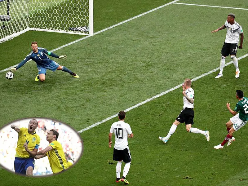 Thua Mexico trận đầu, Đức chỉ còn một con đường trước mắt là phải thắng Thụy Điển (ảnh nhỏ). Ảnh: EPA