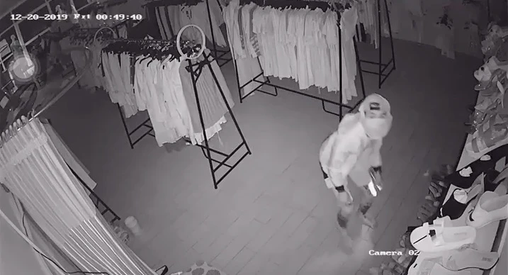 Trích xuất hình ảnh camera cho thấy vào lúc 22 giờ 3 phút ngày 19-12, trộm đến cửa tiệm anh Khoa và bẻ camera an ninh sang hướng khác rồi đột nhập vào trong.