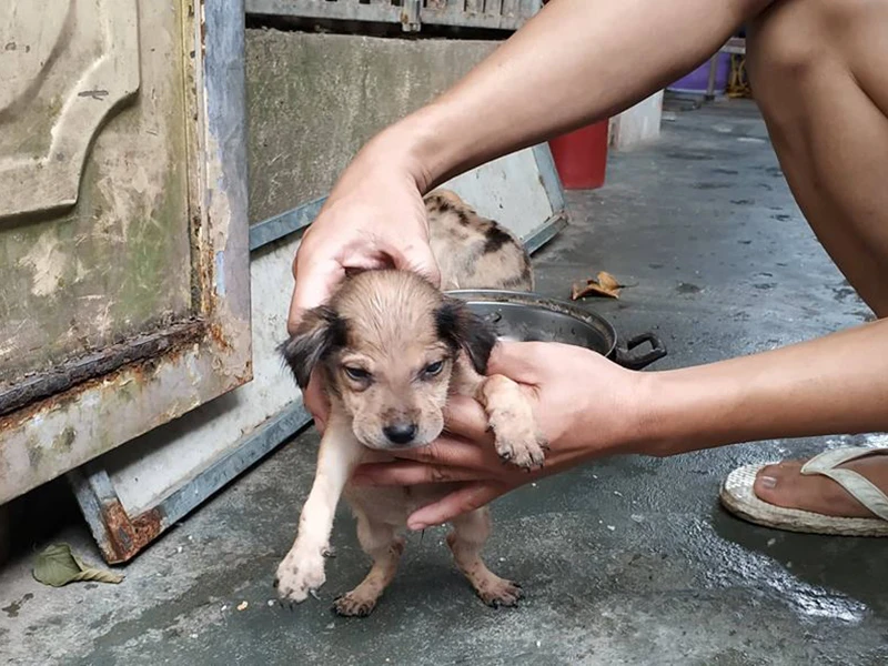Anh H. cho rằng treo biển chửi vì quá xót thương những chú chó con bị mất mẹ do trúng phải bả. Ảnh: ĐỖ HOÀNG