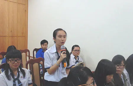 Mở đầu buổi đối thoại, em Phạm Duy Sơn, học sinh lớp 10CT Trường THPT chuyên Trần Đại Nghĩa, cho biết rất vui trước thông tin Bộ GD&ĐT sẽ đưa hai bộ môn kinh tế và nghệ thuật vào chương trình phổ thông. Để giảm bớt áp lực học hành cho học sinh, em Huỳnh Thị Mai Trân, học sinh lớp 11C5 Trường THPT Trí Đức, hiến kế: “Nên tăng liều lượng thực hành vào các bài kiểm tra”. Đồng quan điểm, Bùi Tường Nam Phương, học sinh lớp 11CV1 Trường THPT chuyên Lê Hồng Phong, phát biểu: “Chúng em rất thích các chương trình thực tế trải nghiệm ở trường học, tiếc là những hoạt động như thế chưa nhiều. Vì vậy, để chương trình học bớt khô khan, theo em nên lồng ghép các hoạt động trải nghiệm thực tế vào bài giảng trên lớp nhằm tạo hứng thú cho học sinh”.