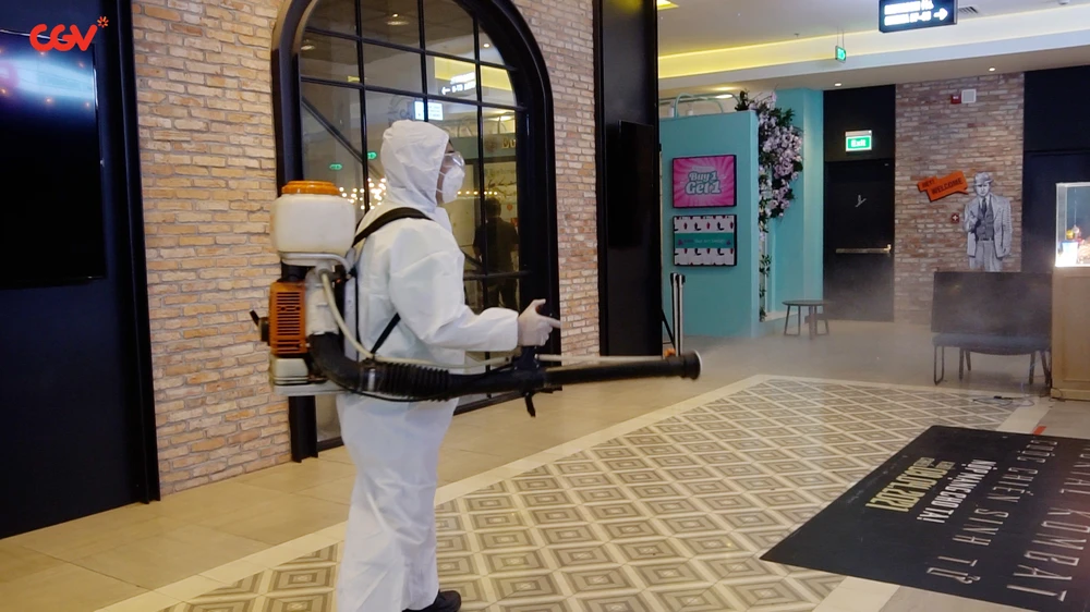 CGV khử khuẩn để mở cửa lại rạp từ giữa tháng 10-2021. Ảnh: CGV cung cấp