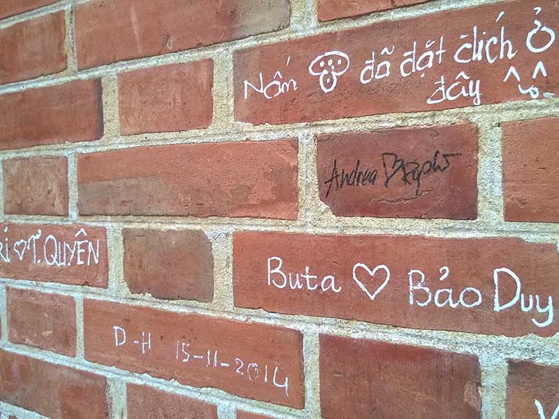 Cũng từ đây, các bạn trẻ đã dùng bút xóa để viết lên bức tường những câu, hình ảnh thơ mộng, diễm tình, ảo não. Thậm chí có nhiều ngôn từ “chợ búa” mà bất cứ ai đọc qua cũng nhăn mặt, lắc đầu (ảnh). Hành động này rất không hay vì đây là chốn trang nghiêm, một công trình kiến trúc mang giá trị tôn giáo, lịch sử đậm dấu ấn của Sài Gòn xưa. Được biết những viên gạch hơn trăm năm không bị rong rêu tầm gửi, vẫn tươi hồng như mới đã được đặt làm tại Marseille (Pháp) và chở sang Sài Gòn vô cùng khó khăn. Các bạn trẻ cần dừng ngay hành động này khi đến tham quan nhà thờ Đức Bà.
