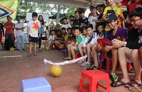“Với bản tính hiếu động, các em hay làm việc riêng, dễ nóng nảy, hở ra là nói tục. Mỗi lần như thế, chúng tôi phải giải thích cho trẻ hiểu. Nếu trẻ nào phạm lỗi, chúng tôi thường phạt các em hít đất, thụt dầu (nắm tai đứng lên rồi ngồi xuống) cho nhớ. Mới vào lớp, các em tụ tập chơi theo nhóm nên chúng tôi thường phân chia lại đội hình để các em giao lưu, học hỏi lẫn nhau. Đến nay, lớp đã đi vào kỷ luật và sinh hoạt rất đoàn kết” - anh Nguyễn Hữu Thắng, Phó Chủ nhiệm CLB Thể thao Tao Đàn, huấn luyện viên lớp bóng đá, chia sẻ.