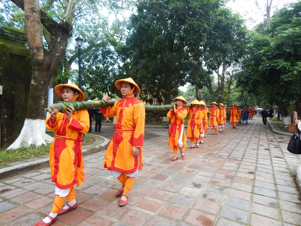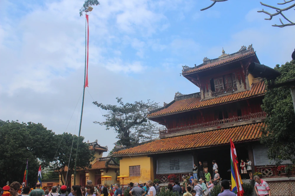 Cây nêu dài 15m được 10 lính vệ vác từ cửa Hiển Nhơn đến Thế Miếu. NGUYỄN DO