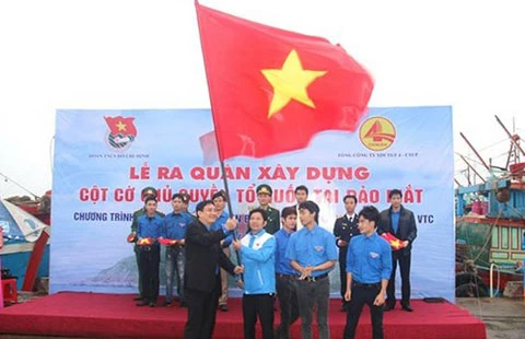 Ông Nguyễn Đắc Vinh, Bí thư thứ nhất Trung ương Đoàn TNCS Hồ Chí Minh, trao cờ cho Tỉnh đoàn Nghệ An để xây dựng cột cờ chủ quyền Tổ quốc tại đảo Mắt. Ảnh: NTV