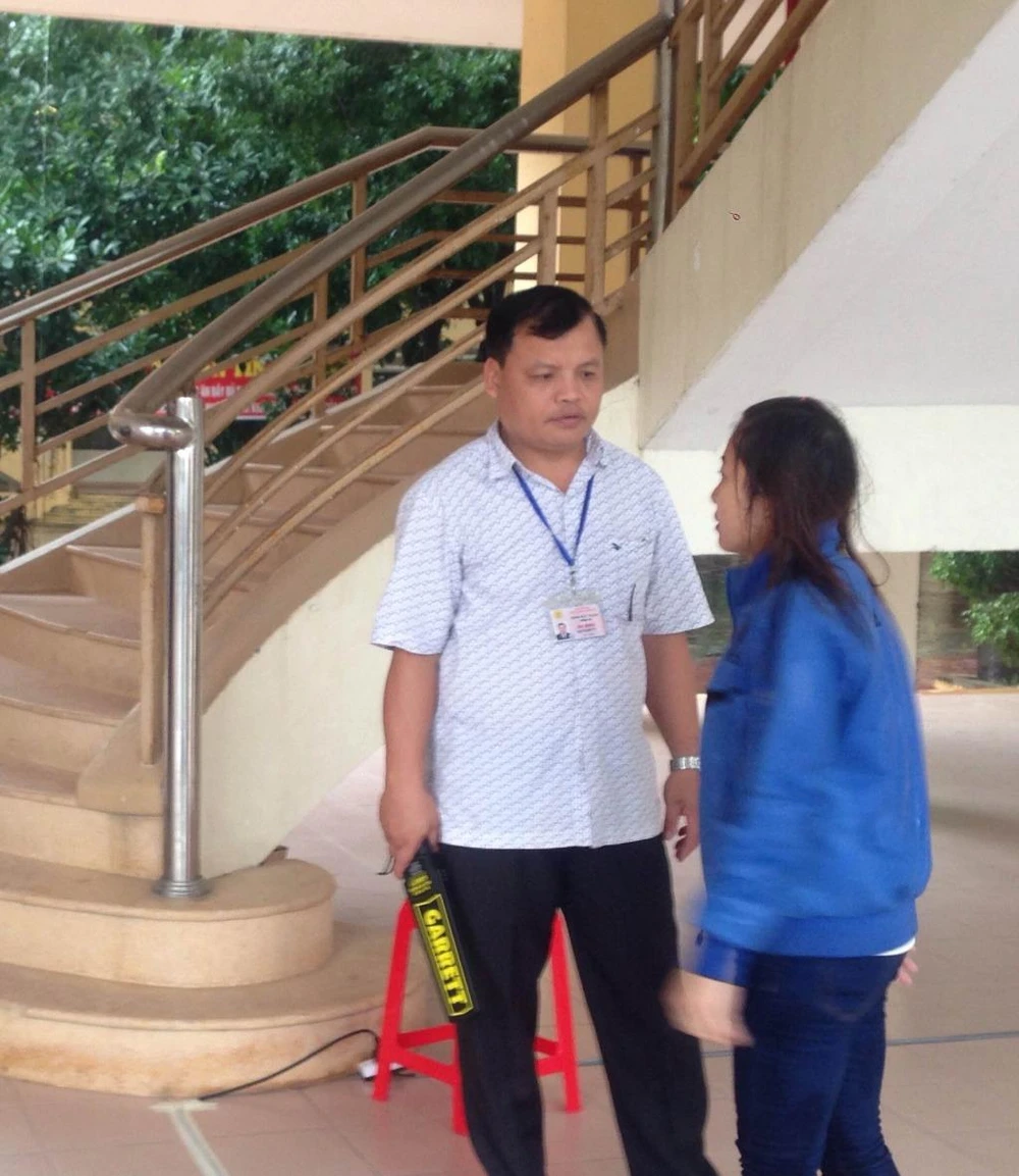 Công tác an ninh tại điểm thi này được thắt chặt, ban tổ chức bố trí cổng từ và nhân viên an ninh dùng máy quét để kiểm tra kỹ từng thí sinh trước khi vào phòng thi.