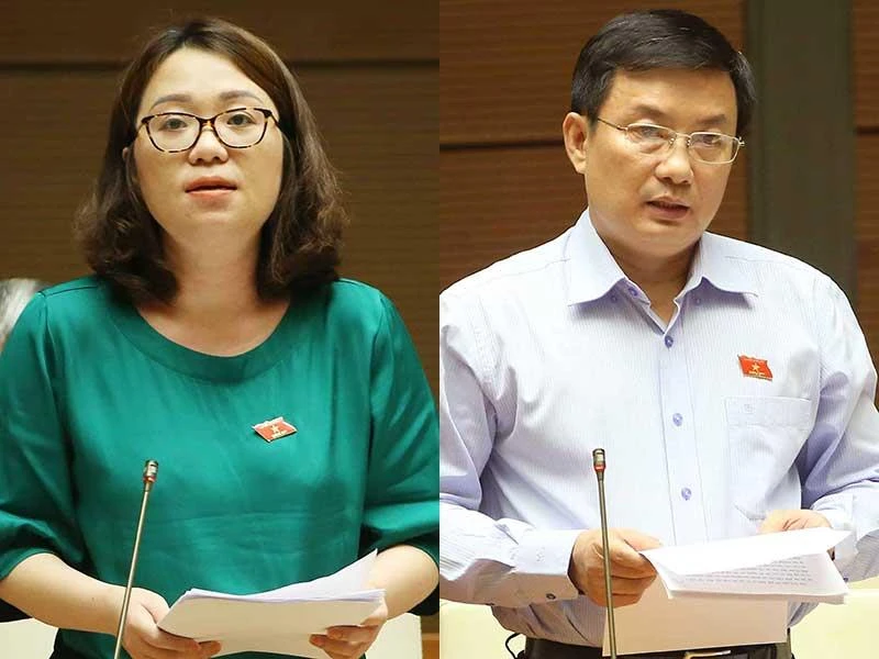 Đại biểu Quốc hội Phạm Thị Minh Hiền (Phú Yên) và đại biểu Quốc hội Phạm Trọng Nhân (Bình Dương) đã đưa ra nhiều ý kiến phản biện sắc sảo tại buổi thảo luận. Ảnh: PV