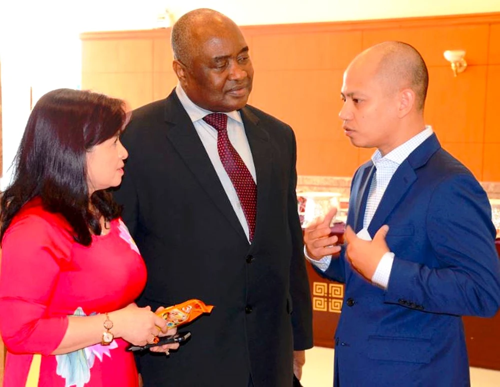 TS. Friday Nwaigwe (giữa) và BS Đỗ Thị Ngọc Diệp, Giám đốc Trung tâm Dinh dưỡng TP.HCM đánh giá rất cao vai trò của hạt nêm bổ sung i-ốt “3 Miền” trong việc cải thiện tình trạng dinh dưỡng cho cộng đồng