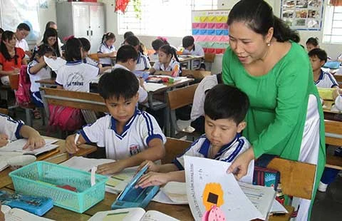 Học sinh Trường Tiểu học Tân Thông Hội (Củ Chi, TP.HCM) trong giờ học theo mô hình tự quản đang được thí điểm tại trường này. Ảnh: P.ANH