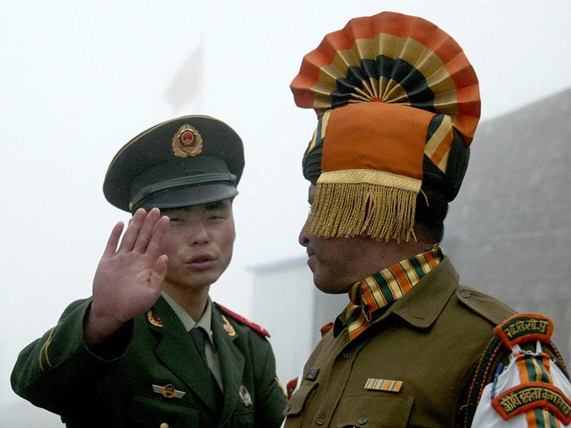 Binh sĩ Trung Quốc (trái) và Ấn Độ (phải) làm nhiệm vụ ở biên giới tại vùng Ladakh đang tranh chấp vào tháng 6-2019. Ảnh: REUTERS