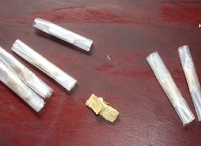 Công an phát hiện trong túi quần của Giang có một lọ nhựa màu vàng, ghi chữ “Play”, nắp đậy màu xanh có 79 đoạn ống nhựa màu trắng hàn kín hai đầu. Ngoài ra còn một hộp nhựa màu đen, ghi chữ “Honey-Lemon” có 54 đoạn ống nhựa màu trắng hàn kín hai đầu, bên trong mỗi đoạn ống nhựa chứa chất bột dạng màu trắng.