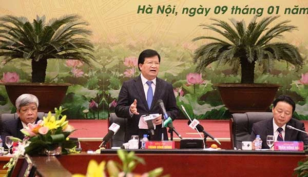 Phó Thủ tướng Trịnh Đình Dũng phát biểu chỉ đạo tại hội nghị ngành tài nguyên môi trường năm 2016. Ảnh: ĐẶNG TRUNG