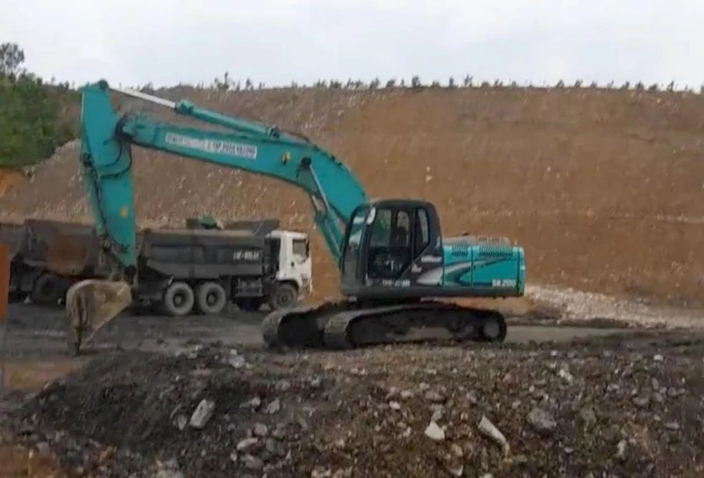 Trong khi đó, với lý do lấy đất để san lấp mặt bằng dự án, doanh nghiệp đã đào bới tan hoang khu vực đồi núi ở gần đó. Cả một khu vực rộng mênh mông trở thành đại công trường bạt núi. Từng đống lớn than, xít được tập kết trên mặt đất với đủ chủng loại. Xung quanh có những moong nước rộng mênh mông, nham nhở đất đá. Hàng chục xe tải, máy công trình nằm bất động ngay cạnh lối vào. Trước tình trạng này, người dân nghi ngờ đây chỉ là dự án “núp bóng” để khai thác than trái phép.