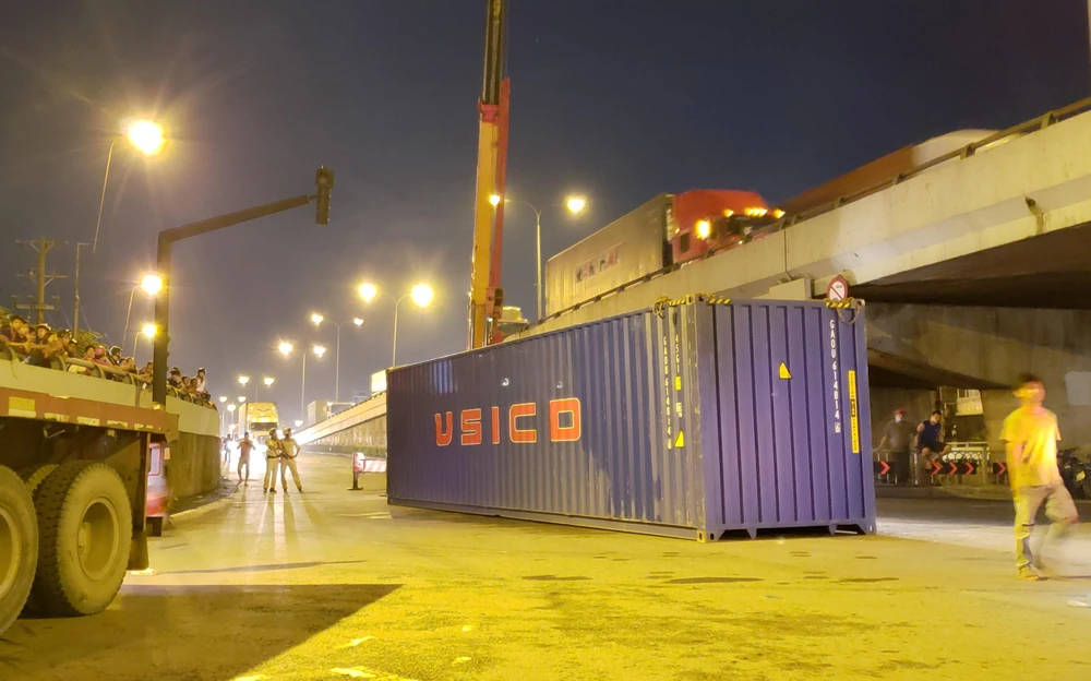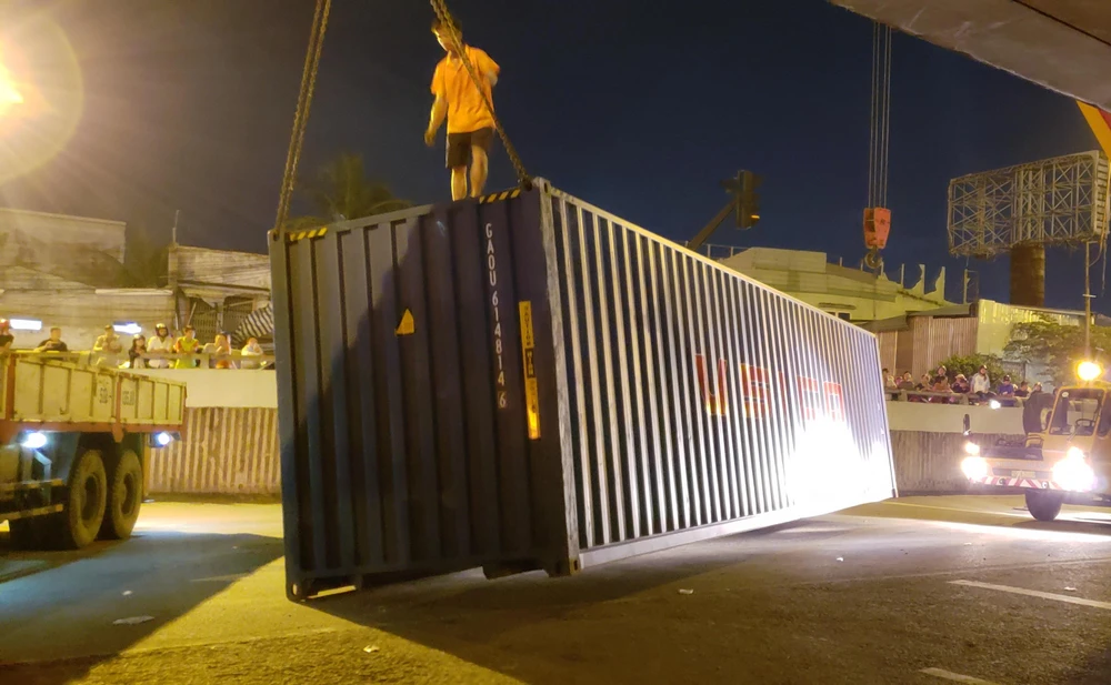 Đến gần 22 giờ cùng ngày, thùng container được di dời, giao thông ổn định trở lại.