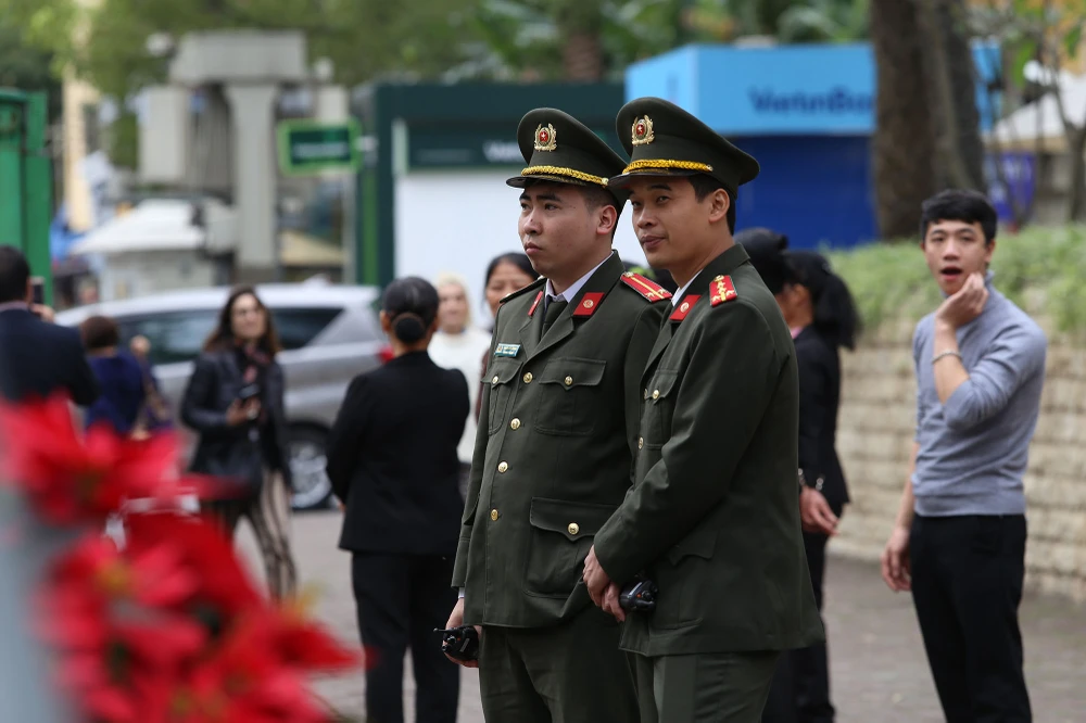 An ninh được thắt chặt xung quanh khách sạn với sự tham gia của cảnh sát giao thông, an ninh, cảnh sát trật tự.