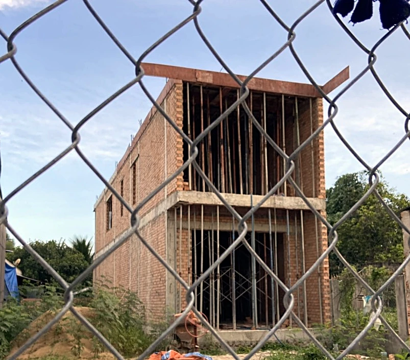 Căn nhà lầu đang xây dựng có dấu hiệu xuống cấp