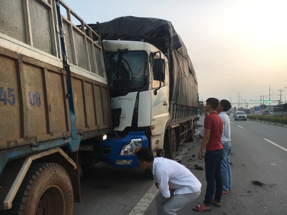Tài xế xe tải chết thảm khi bị xe tải phía sau tông trúng.