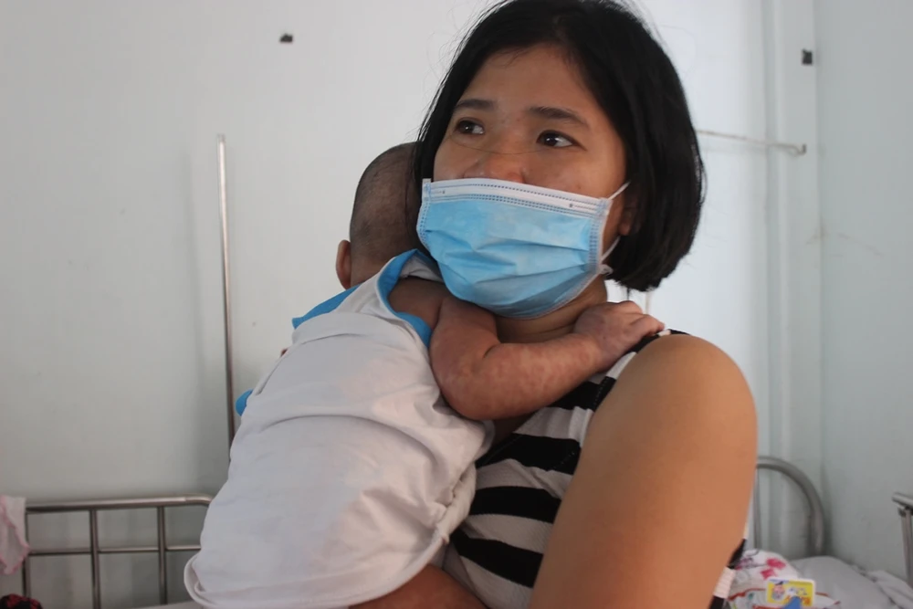 Một bệnh nhi 8 tháng tuổi nghi mắc sởi sau khi vào BV Nhi đồng 2 (TP.HCM) chữa bệnh viêm đường hô hấp trước đó hơn 1 tuần do ở cùng khoa với một bé bị sởi mà không hay. Ảnh: HOÀNG LAN