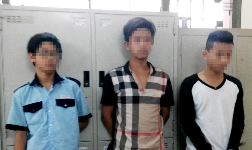 Các nghi can gồm Võ Phú Trực (15 tuổi, học lớp 9), Lê Trọng Nhân (14 tuổi) và Bùi Tuấn Kiệt (14 tuổi, đều học lớp 8) là học sinh trường THCS Thăng Long đóng tại quận 3, TP.HCM.