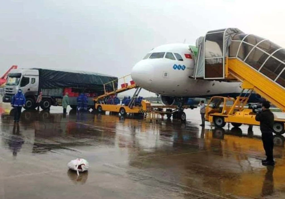 Chiều 20-10, một máy bay chở hàng thiết yếu từ Hà Nội đã hạ cánh tại sân bay Đồng Hới (Quảng Bình).