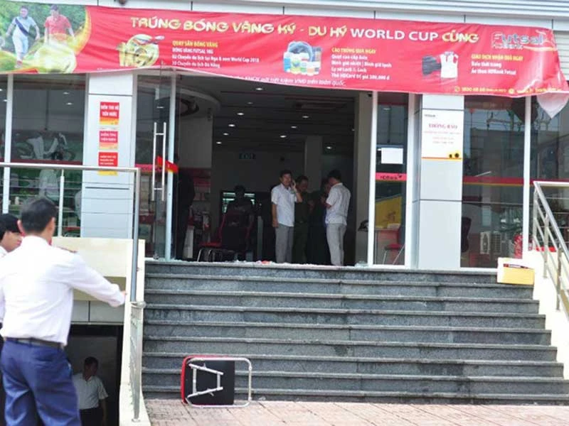 Hiện trường vụ cướp ở Phòng giao dịch Ngân hàng HDBank. Ảnh: V.HỘI