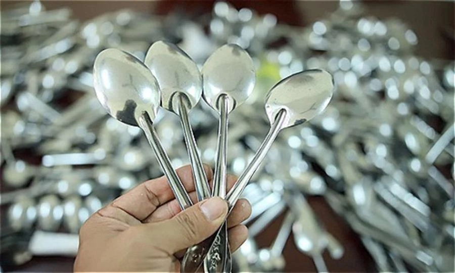 Những thìa/ muỗng có rãnh sau khi được rửa bằng cùng một loại nước rửa chén với muỗng không rãnh, thì muỗng có rãnh còn bám bẩn nhiều hơn. Ảnh: Internet