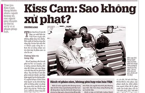 Trên các số báo trước, Pháp Luật TP.HCM đã phản ánh về trào lưu mới xuất hiện gần đây: Kiss Cam hay còn gọi là trò đè người lạ hôn môi (xem thêm bài “Kiss Cam: Sao không xử phạt?”). Nhiều bạn đọc phản hồi bày tỏ sự “kinh tởm” và tức giận về Kiss Cam. Mọi người cho rằng đây là hành động phản cảm, mất vệ sinh, quái gở, bất lịch sự... Thậm chí sẽ xuất hiện trường hợp ăn theo, lợi dụng chuyện này để có hành vi xấu với các bạn nữ hoặc xáp vào Kiss Cam nhưng thực tế là để cướp giật, trộm đồ...