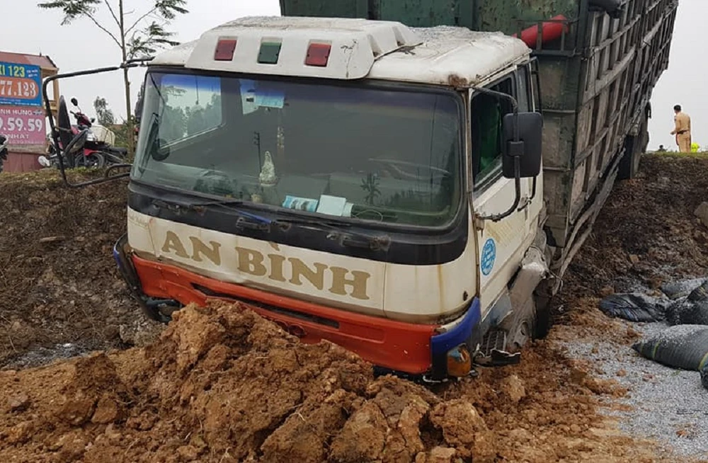 Chiếc xe tải tiếp tục lao sang bên kia đường, bay xuống một khu ruộng.
