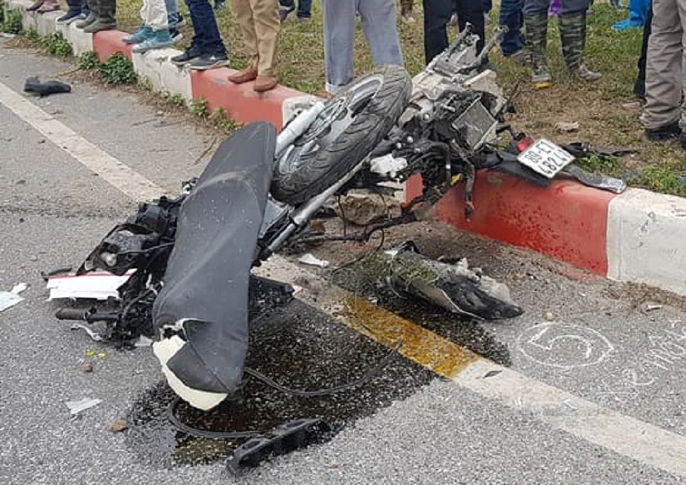 Chiếc xe máy nát vụn sau va chạm. Ảnh FB