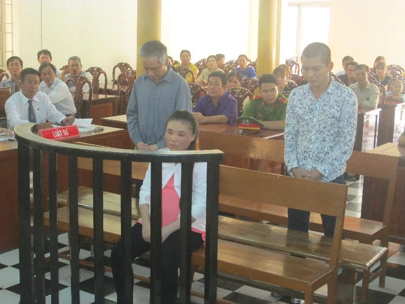 Bị cáo Nguyễn Văn Tú (bên phải) và Mai Em, Sơn tại tòa.