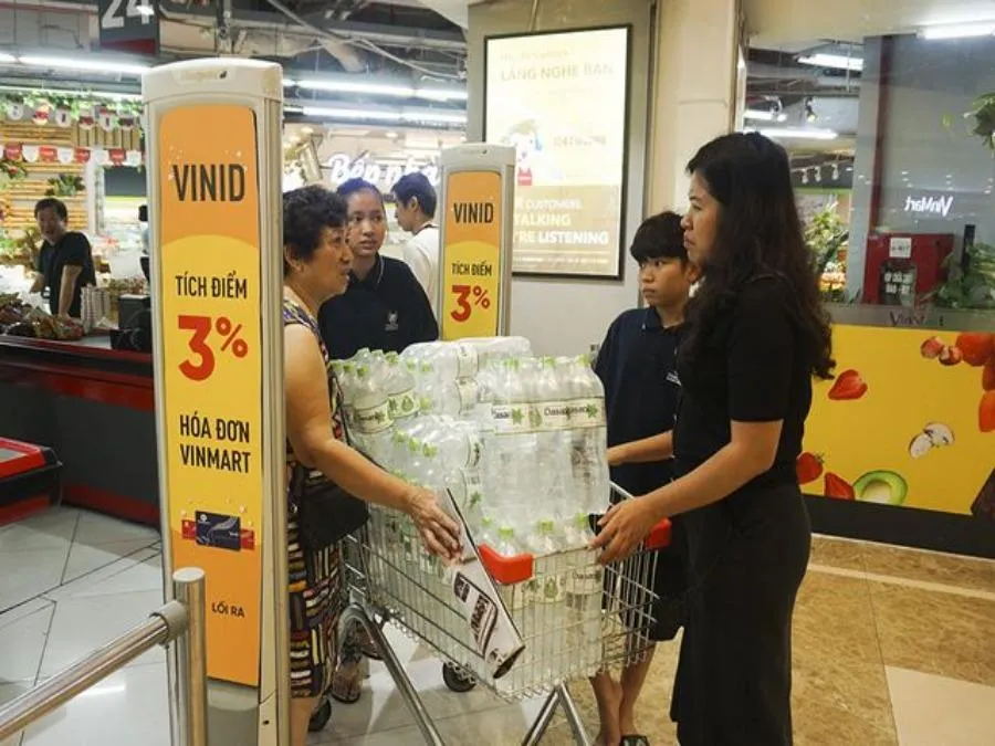 Người dân đổ xô đến siêu thị mua nước về để phục vụ nấu ăn, sinh hoạt. Ảnh: Dân Trí